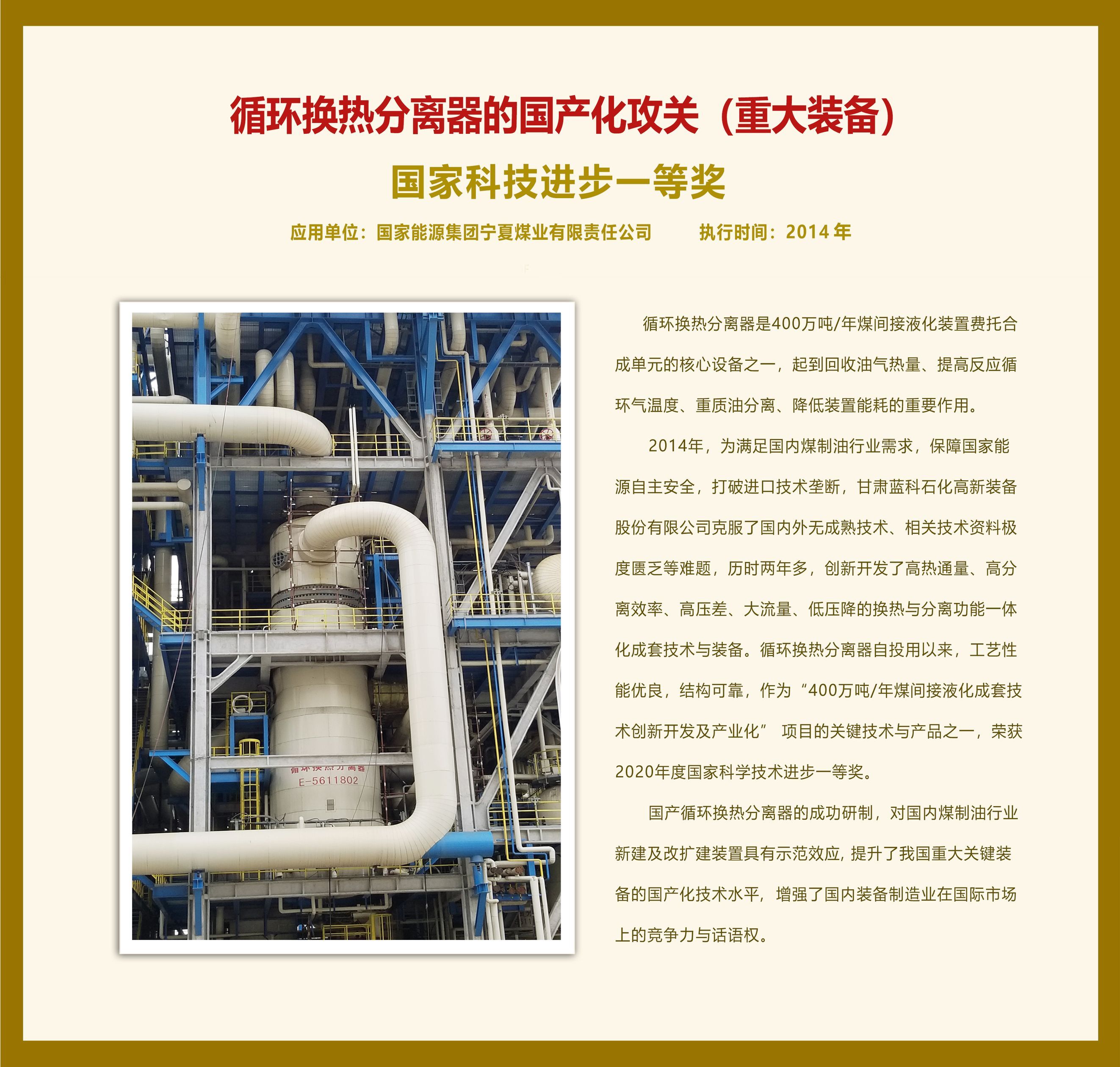 循環(huán)換熱分離器的國產(chǎn)化攻關(guān)(重大裝備)國家科技進(jìn)步一等獎